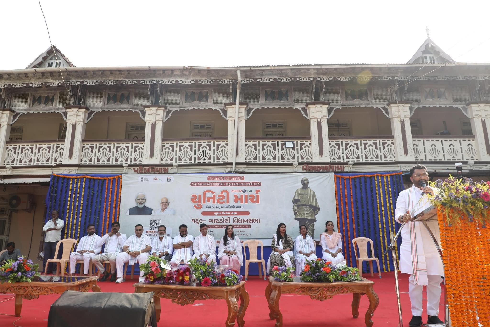 હિન્દ ન્યુઝ, સરદાર વલ્લભભાઈ પટેલની ૧૫૦મી જન્મજયંતીના અવસરે બારડોલી વિધાનસભાની સરદાર @ ૧૫૦ યુનિટી માર્ચ પદયાત્રાને અકોટી ગામેથી પ્રસ્થાન કરાવતા ધારાસભ્ય ઈશ્વરભાઈ પરમાર દેશની એકતાના પ્રતિક સરદાર વલ્લભભાઈ પટેલની ૧૫૦મી જન્મ જયંતીની ઉજવણીના ભાગરૂપે બારડોલી વિધાનસભા વિસ્તારની ‘સરદાર @ ૧૫૦ યુનિટી માર્ચ’ પદયાત્રાને બારડોલીના અકોટીગામથી ધારાસભ્ય ઈશ્વરભાઈ પરમાર અને જિલ્લા પ્રમુખ શ્રીમતી ભાવિનીબેન પટેલે ફ્લેગ ઓફ આપી પ્રસ્થાન કરાવ્યું હતું.