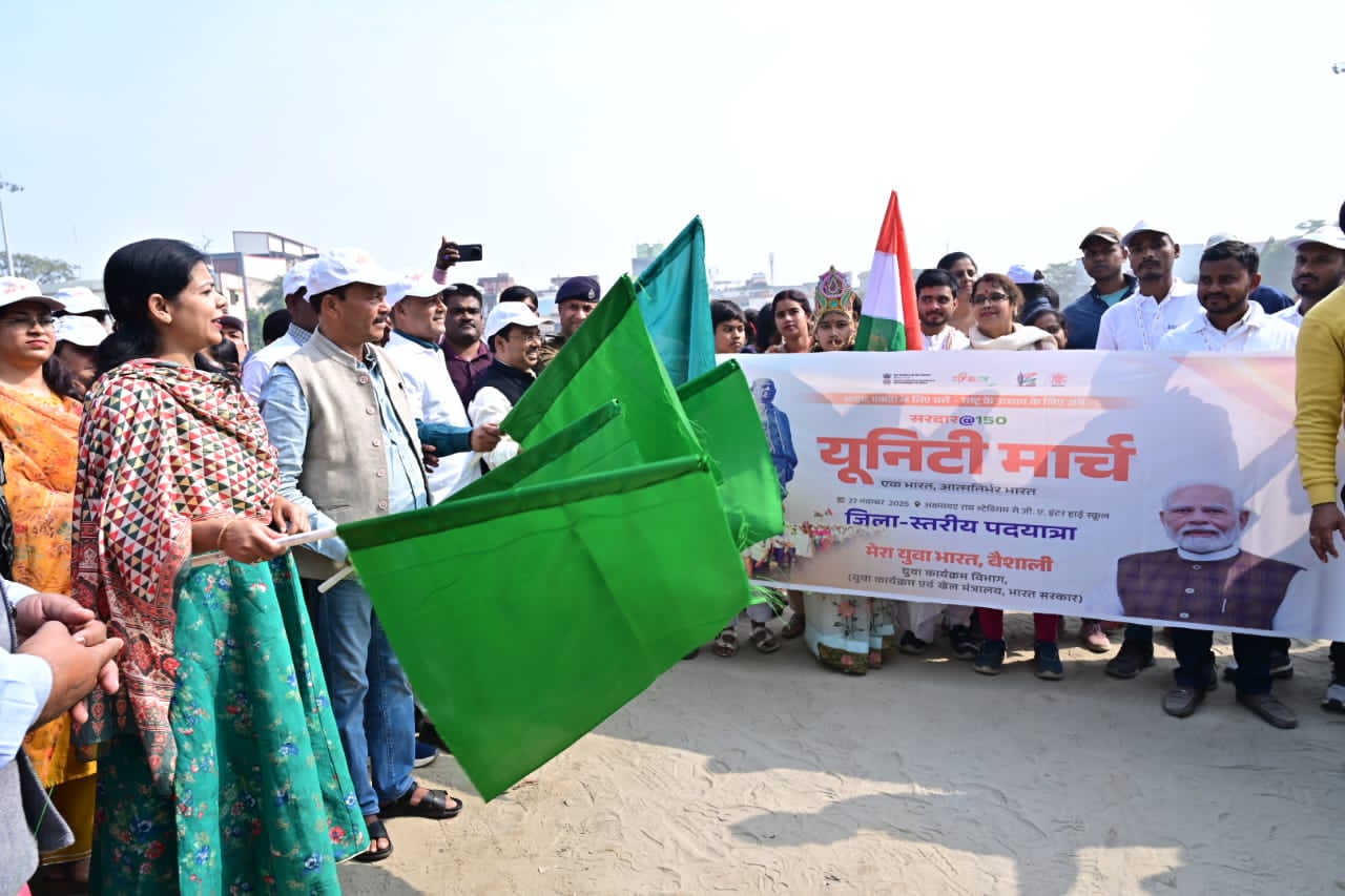 हिन्द न्यूज़, बिहार सरदार वल्लभभाई पटेल की 150वीं जयंती के अवसर पर वैशाली जिले में अक्षयवट राय स्टेडियम से जीए इंटर विद्यालय, तक एक गौरवपूर्ण एवं उत्साहपूर्ण पदयात्रा निकाली गयी । कार्यक्रम का शुभारंभ वैशाली जिला पदाधिकारी , श्रीमती वर्षा सिंह तथा स्थानीय हाजीपुर विधायक, अवधेश सिंह के द्वारा हरी झंडी दिखाकर किया गया | जिला पदाधिकारी वैशाली श्रीमती वर्षा सिंह के द्वारा पदयात्रा में शामिल सभी लोगों को संबोधित करते हुए कहा गया कि राष्ट्र के निर्माण में सरदार वल्लभ भाई पटेल का योगदान अभूतपूर्व एवं अमूल्य…