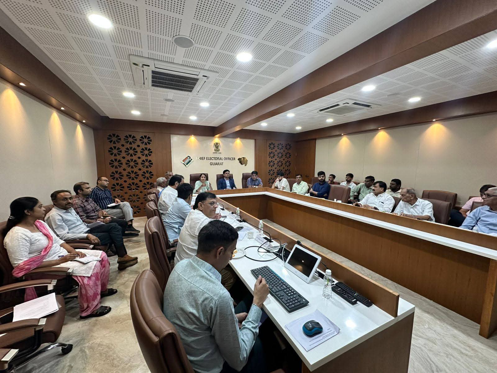 હિન્દ ન્યુઝ, ગાંધીનગર ગુજરાતમાં મતદાર યાદીની ખાસ સઘન સુધારણા ઝુંબેશ પુરજોશમાં, ગણતરીનો તબક્કો 11મી ડિસેમ્બર સુધી ચાલશે અને 16 ડિસેમ્બરના રોજ ડ્રાફટ મતદાર યાદી પ્રસિદ્ધ કરવામાં આવનાર છે. ભારતના ચૂંટણીપંચના માર્ગદર્શનમાં તથા મુખ્ય નિર્વાચન અધિકારીશ્રી હારીત શુક્લાની આગેવાનીમાં માન્ય રાજકીય પક્ષોના પ્રતિનિધિઓ સાથે બેઠક યોજાઈ, જેમાં CEO હારીત શુક્લાએ ઉપસ્થિત પ્રતિનિધિઓને SIRની કાર્યપ્રગતિથી માહિતગાર કર્યા. તેમણે જણાવ્યું કે, હાલ 82.85%થી વધુ ગણતરી ફોર્મ્સનું ડિજિટાઈઝેશન સંપન્ન થયું છે. દર કલાકે આ કામગીરીનો આંકડો વધી રહ્યો છે, અંતરિયાળ અને આદિજાતિ જિલ્લાઓ ફોર્મના ડિજિટાઈઝેશની કામગીરીમાં અગ્રેસર છે.