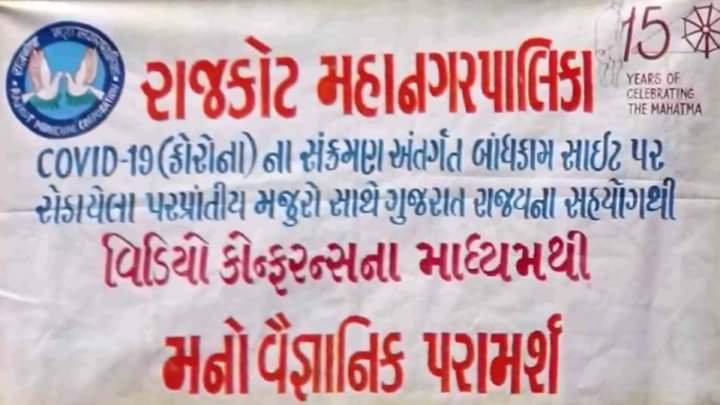 રાજકોટ શહેર તા.૨૦.૪.૨૦૨૦ ના રોજ હાલ તમામ સાઈટો પર ઘણા સમયથી કામ બંધ હોય. તેમજ શહેરની જુદી-જુદી સાઈટ પર મજુરી અર્થે આવેલા મોટાભાગના અટવાયેલા મજુરો પરપ્રાંતીય હોય. તેઓ પોતે પોતાના વતન તરફ જવા પ્રયત્નશીલ છે. આવી પરિસ્થિતિમાં સાઈટ પર રહેલા મજુરોનું મનોબળ જળવાય રહે તે હેતુસર રાજ્ય સરકારના ગૃહવિભાગ દ્વારા કાર્યરત કંટ્રોલરૂમ તરફથી આ લોકડાઉન દરમિયાન રોકાયેલ. સ્થળાંતર કરતા મજુરો માટે વિડીયો કોન્ફરન્સના માધ્યમથી મનોવૈજ્ઞાનિક પરામર્શ કરવા જણાવવામાં આવેલ છે. આ માટે નોડલ અધિકારી તથા મનોવૈજ્ઞાનિકની ટીમ ફોરેન્સિક સાયન્સ લેબ. ગાંધીનગર ખાતે નિયુક્ત કરવામાં આવેલ છે.