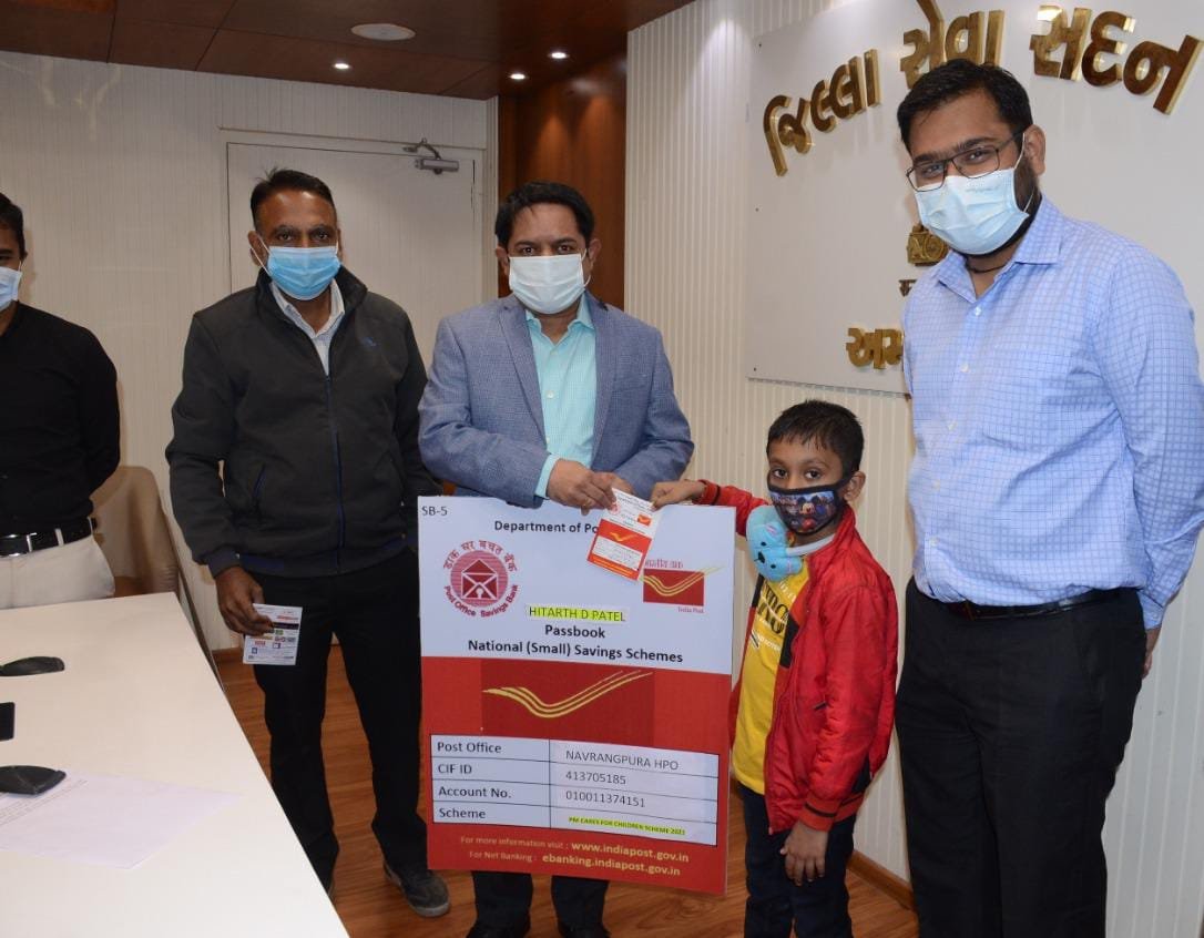અમદાવાદ જિલ્લા કલેક્ટર સંદિપ સાગલે દ્વારા કોરાનાની બિમારીના કારણે માતા-પિતા બંને ગુમાવનાર 18 થી નાની વયના 5 બાળકોને સહાય અર્પણ કરવામાં આવી હતી. PM CARES ફોર ચિલ્ડ્રન સ્કીમ હેઠળ 5 બાળકોને 10 લાખ રૂપિયાના સહાયની પોસ્ટ એકાઉન્ટની પાસબુક આપવામાં આવી હતી. દસક્રોઇ તાલુકાના વહેલાલ ગામમાં રહેતા દંપતી સ્વ.રાજેશભાઇ અને મીનાક્ષીબેનનું જુલાઇ મહિનામાં કોરોનાની બીજી લહેરમાં કોરોનાથી સંક્રમિત થયા બાદ સારવાર દરમિયાન મૃત્યુ થયું હતુ. આ દપંતિની માસુમ દિકરી વિશ્વાંગી(ઉ.વ. 3.5) અને દિકરા પ્રતિક(ઉ.વ. 16) એ માતા-પિતાની છત્રછાયા ગુમાવી. આ બંને બાળકોને માતા-પિતાની ખોટ વર્તાઇ રહી હતી સાથો સાથ જીવન ગુજરાન અને કારકિર્દી ઘડતર માટેના પ્રશ્ન પણ મુંઝવી રહ્યા હતા. હાલ આ બંને બાળકો તેમના કાકા વિક્રમભાઇ પરમારની છત્રછાયા હેઠળ છે. મધ્યમવર્ગીય આ પરિવાર માટે બંને બાળકોનો શ્રેષ્ઠ ઉછેર કરીને તેમને પગભર કરવાનો ધ્યેય છે. આ પરિસ્થિતિમાં “PM CARES ફોર ચિલ્ડ્રન સ્કીમ” હેઠળ મળેલી 10 લાખ રૂપિયાની સહાય મધ્યમવર્ગીય પરિવાર માટે આશીર્વાદ રૂપ બની રહેશે. ઘોરણ 11 આર્ટસમાં અભ્યાસ કરતા 16 વર્ષીય પ્રતિક અભ્યાસ બાદ પોલીસ સેવામાં જોડાઇ દેશ અને સમાજસેવા કરવાનું સ્વપ્ન સેવી રહ્યા છે. સરકાર દ્વારા મળેલી સહાય શ્રેષ્ઠ શિક્ષણ અપાવવામાં , સ્પર્ધાત્મક પરિક્ષાની તૈયારીમાં અને મારી કારકિર્દી ઘડતરમાં અત્યંત મહત્વની બની રહેશે તેવી લાગણી પ્રતિકે વ્યક્ત કરી હતી. વિક્રમભાઇ પરમારે વિશ્વાંગીને C.B.S.E. બોર્ડનું શિક્ષણ આપતી શાળામાં પ્રવેશ અપાવીને ગુણવત્તાયુક્ત શિક્ષણ દ્વારા પગભર કરવાની ઇચ્છા વ્યક્ત કરી હતી. અત્રે ઉલ્લેખનીય છે કે, 18 થી નાની વયના આ 5 બાળકોનું કલેક્ટરના નોમિનેશન અંતર્ગત પોસ્ટમાં એકાઉન્ટ ખોલાવવામાં આવ્યું છે. જેમાં ઉપરોક્ત નાણાકીય સહાય જમાં કરાવવામાં આવશે. બાળક 18 વર્ષનું થયા બાદ જ આ રકમ ખાતામાંથી ઉપાડી શકાશે. પરંતુ આકસ્મિક સંજોગોમાં જિલ્લા કલેક્ટર સાથે પરામર્શ કરીને તેમના હસ્તાક્ષર થી બાળકની આક્સમિક જરૂરિયાતમાં પણ આ રકમનો ઉપયોગ થઇ શકશે.