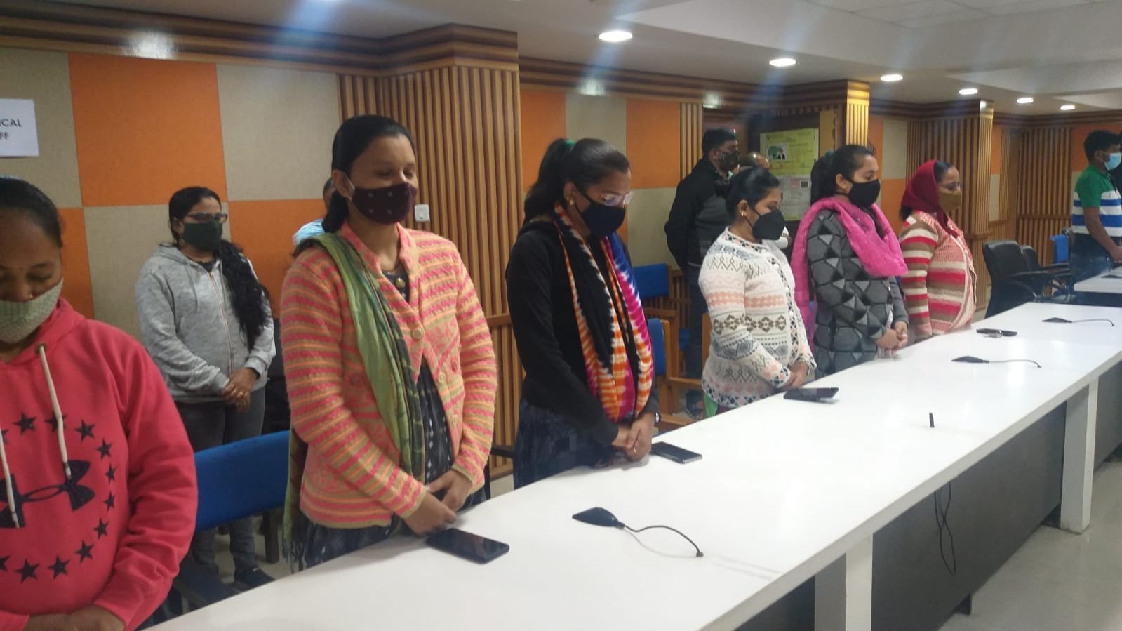 સાબરકાંઠામાં કલેક્ટર કચેરી હિંમતનગર ખાતે શહીદ દિન નિમિત્તે મૌન પાળવામાં આવ્યું હતું. ભારત દેશના સ્વાતંત્ર્ય સંગ્રામમાં જે શહીદ વીરોએ પોતાના પ્રાણના બલિદાન આપ્યા છે તેવા શહીદ વીરોની સ્મૃતિમાં ૩૦મી જાન્યુઆરી, ૨૦૨૨, રવિવારના રોજ શહીદ દિનની ઉજવણી સમગ્ર રાજ્યમાં કરવામાં આવી. જેના ઉપલક્ષ્યમાં જિલ્લામાં સવારે ૧૧.૦૦ વાગે સાયરન વગાડી બે મિનિટ મૌન પાળી સ્વદેશ માટે પ્રાણની આહુતિ આપનાર શહીદ વીરો પ્રત્યેનું ઋણ અદા કરવા કામકાજની અને વાહન વ્યવહારની ગતિને બે મિનિટ પૂરતી બંધ રાખી મૌન પાળવામાં આવ્યું હતું. પુરવઠા અધિકારી, જમિન સંપાદન અધિકારી, નાયબ ચીટનિશ અધિકારી સહિત સૌ અધિકારીઓ/કર્મચારીઓ દ્વારા સવારે ૧૧.૦૦ વાગે બે મિનિટ મૌન પાળી શહીદ વીરોને શ્રધ્ધાંજલી આપવામાં આવી હતી.