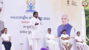 આજ રોજ ભક્તકવિ નરસિંહ મહેતા યુનીવર્સીટી, જૂનાગઢ દ્રારા જૂનાગઢ, ગીર સોમનાથ, પોરબંદર અને દેવભૂમિ દ્રારકા જીલ્લામાં આંતરરાષ્ટ્રીય યોગ દિનની ભવ્ય ઉજવણી કરવામાં આવી જે પૈકી જૂનાગઢ જિલ્લા માં માન.ઇ.સી મેમ્બર ચંદ્રેશભાઈ હેરમાં ની આગેવાની હેઠળ રાધા દામોદર મંદિર , દામોદર કુંડ જૂનાગઢ ખાતે સમુહ યોગ નું આયોજન કરાયું. જેમાં મુખ્ય અતિથિ તરીકે ભક્તકવિ નરસિંહ મહેતા યુનીવર્સીટીના કુલપતિ ડૉ. ચેતન ત્રિવેદી હાજર રહ્યા હતા.