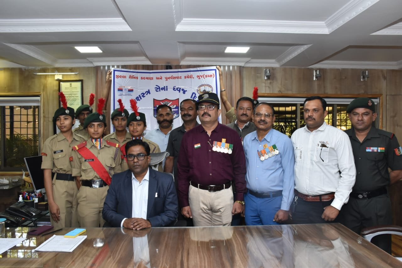 શહીદોના નિરાધાર પરિવારોની યોગ્ય કદર કરવા અને તેઓની સાથે એકાત્મતા સાધવા તેમજ માજી સૈનિકો અને તેમના પરિવારોના કલ્યાણ અને પુનર્વસવાટની યોજનાઓમાં મદદ કરવા “સશસ્ત્ર સેના ધ્વજદિન” આપણને એક અનેરો અવસર પુરો પાડે છે. દર વર્ષે તા.૦૭ ડિસેમ્બરના રોજ રાષ્ટ્રીય સ્તરે સંપુર્ણ ભારત દેશમાં ઉજવવામાં આવે છે. ત્યારે આજરોજ માજી સૈનિકોની હાજરીમાં કચ્છ કલેકટરે પ્રથમ ડોનેશન આપીને સમગ્ર કચ્છવાસીઓને ઉદાર હાથે ફાળો આપવા અપીલ કરી હતી તથા આ દિવસની શુભેચ્છા પાઠવી હતી.