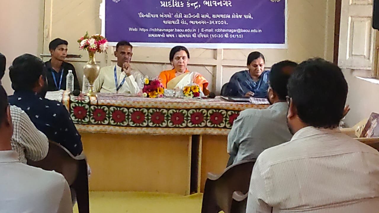 આ તકે ભાવનગર રિજ્યોનલ સેન્ટર હેઠળના ભાવનગર, અમરેલી અને બોટાદ જિલ્લામાં કાર્યરત કોલેજ સેન્ટરના સંચાલકો, પ્રાધ્યાપકો અને અધ્યાપકો તથા શિક્ષણવિદો વિશાળ સંખ્યામાં ઉપસ્થિત રહ્યા હતા. કા.કુલપતિશ્રી પ્રો.(ડૉ) અમીબેન ઉપાધ્યાયની અધ્યક્ષતામાં ” એજ્યુકેશન ફોર ઓલ ” ના શિર્ષક હેઠળ શિક્ષણ સંગોષ્ઠિ યોજાઇ હતી. ગંગોષ્ટિના પ્રારંભે ભાવનગરના ડાયરેક્ટર ડૉ. પ્રીતિબેન જોષીએ સ્વાગત કર્યું હતું.