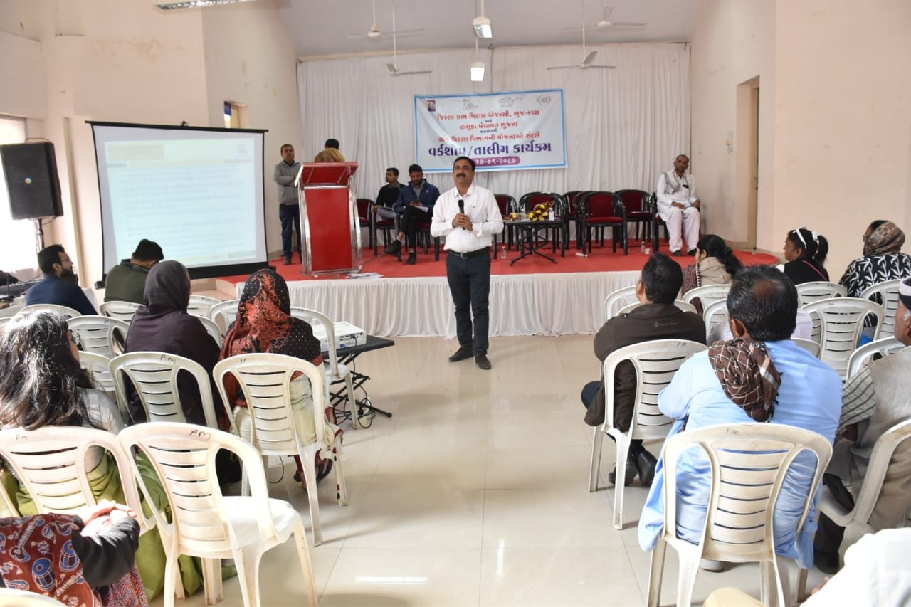 આજરોજ ભુજ ખાતે ભુજ તાલુકાના નાગરીકો માટે ગ્રામ વિકાસ વિભાગની યોજનાઓ સંદર્ભે વર્કશોપ તાલીમ કાર્યક્રમ યોજાયો હતો. જેમાં સરકારની વિવિધ યોજનાઓ અંગે ઉપસ્થિતોને માહિતગાર કરાયા હતા.
