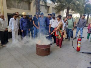 રાજકોટ મહાનગર પાલિકા ફાયર અને ઈમરજન્સી સર્વિસીઝ દ્વારા રાજકોટ શહેર વિસ્તારમાં આવેલ હાઇરાઇઝ બિલ્ડીંગમાં લગાવવામાં આવતી ફાયર સેફટીના સાધનો જે બિલ્ડીંગમાં રહેતા લોકોને જાગૃતી માટે તા.૨૧/૦૨/૨૦૨૩ ના રોજ સંસ્કાર સીટી એ + બી + સી + ડી, મવડી બાય પાસ, રાજકોટ ખાતે ચીફ ફાયર ઓફીસર આઇ. વી. ખેર અને ડે.ચીફ ફાયર ઓફીસર બી. જે. ઠેબાના સુપરવિઝન હેઠળ ફાયર સેફટી અંગે મોકડ્રીલનું આયોજન કરવામાં આવેલ હતું. આ બાબતે વધુ ને વધુ લોકો ભાગીદાર થાય અને ફાયર સેફટીની તાલીમ મેળવે જેથી આપણા ગૌરવશાળી રાજકોટને વધુ ને વધુ સુરક્ષીત બનાવવા આગળ આવે તેવો જાહેર જનતાને અનુરોધ કરવામા આવે છે. જે બિલ્ડીંગ દ્વારા પોતાની બિલ્ડીંગમાં મોકડ્રીલ આયોજન કરવા સ્વેચ્છીક અરજી કરશે તેમને પહેલી તક આપવામાં આવશે.