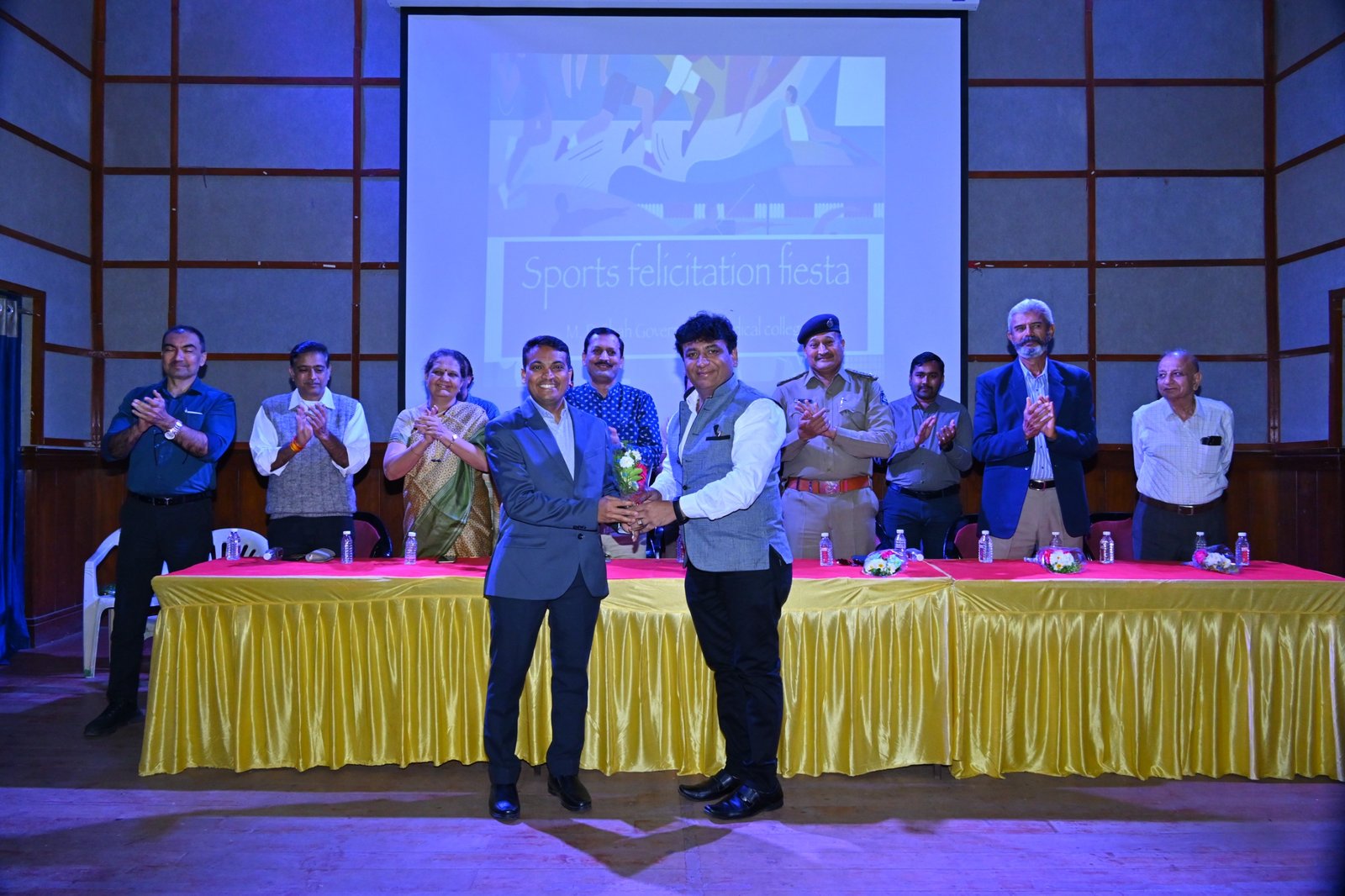 શ્રી એમ.પી.શાહ સરકારી મેડીકલ કોલેજ જામનગર ખાતે ડીન ડો.નંદની દેસાઈ તથા ફેકલ્ટી ડીન ડો.વિજય પોપટનાં માર્ગદર્શન હેઠળ “સ્પોર્ટ્સ ફેલીસીટેશન ફીએસ્ટા ૨૦૨૪” કાર્યક્રમનું આયોજન કરવામાં આવેલ. જેમાં સૌરાષ્ટ્ર યુનિવર્સીટી આયોજિત આંતર કોલેજ સ્પર્ધામાં ભાગ લઈ ઉત્કૃષ્ટ દેખાવ કરનાર મેડિકલ કોલેજના વિદ્યાર્થીઓને ઉપસ્થિત મહાનુભાવોના હસ્તે સન્માનવામાં આવેલ.