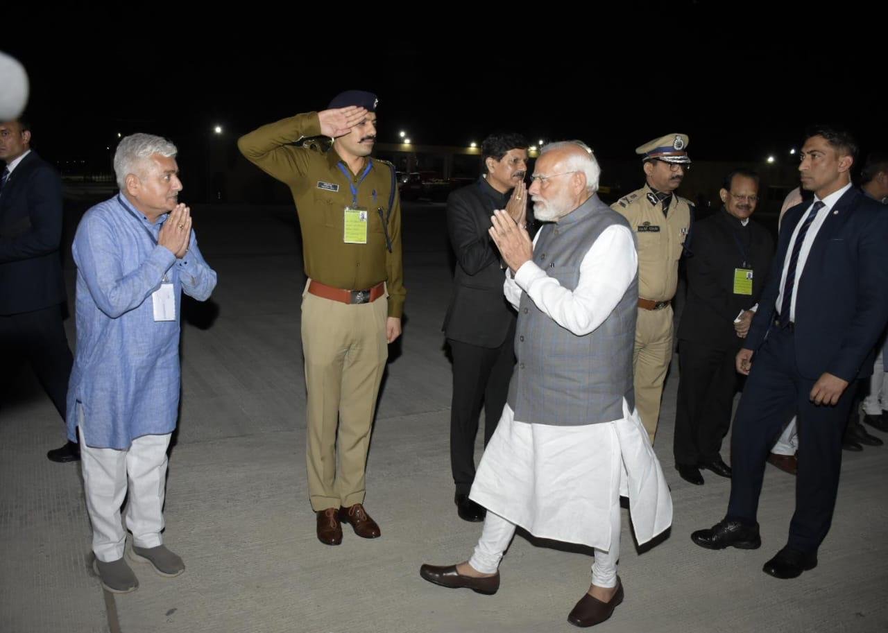 વડાપ્રધાન નરેન્દ્રભાઇ મોદીનું જામનગર એરફોર્સ ખાતે આગમન થતાં મહાનુભાવો દ્વારા ભાવભર્યું સ્વાગત કરવામાં આવ્યું હતું. વડાપ્રધાન ના સ્વાગતમાં રાજ્યના મુખ્યમંત્રી ભુપેન્દ્રભાઇ પટેલ, સાંસદ સી. આર. પાટિલ, કેબિનેટમંત્રી મુળુભાઈ બેરા, સાંસદ પૂનમબેન માડમ, ચીફ સેક્રેટરી રાજકુમાર, જિલ્લા પંચાયતના પ્રમુખ શ્રીમતી મેયબેન ગરસર, જામનગરના મેયર વિનોદભાઇ ખીમસૂરિયા, ધારાસભ્યો મેઘજીભાઈ ચાવડા, શ્રીમતી રિવાબા જાડેજા, દિવ્યેશભાઇ અકબરી, ડીજીપી વિકાસ સહાય, કલેકટર બી. કે. પંડયા, જિલ્લા પોલીસ વડા પ્રેમસુખ ડેલું, એર કોમોડોર પુનિત વિગ, અગ્રણીઓ રમેશભાઈ મૂંગરા, વિમલભાઈ કગથરા, સહિતના મહાનુભાવો ઉપસ્થિત રહ્યા હતા.