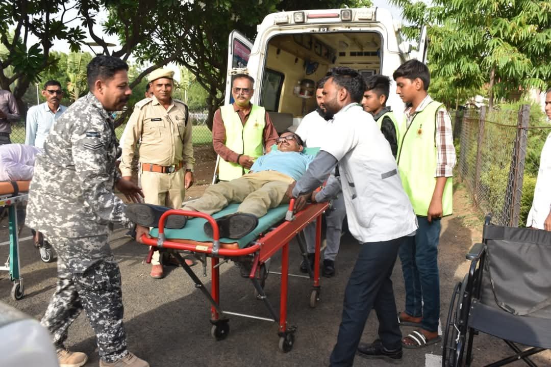 રાજકોટના માધાપર સ્થિત આઈ.ટી.આઈ. ખાતે સિવિલ ડિફેન્સ મોકડ્રીલના ભાગરૂપે રેડ ક્રોસના સૌજન્યથી ફર્સ્ટ એઇડ ટ્રેનીંગ સેશનનું આયોજન કરાયું; ગ્રામજનો તેમજ વિવિધ વોલન્ટીયર્સને પ્રાથમિક સારવાર, બ્લીડિંગ, ફ્રેક્ચર, બેન્ડેજીસ રિકવરી તેમજ CPRની તાલીમ અપાઈ