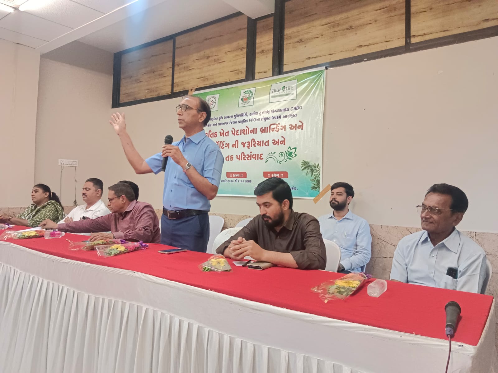 ગુજરાત પ્રાકૃતિક કૃષિ સાયન્સ યુનિવર્સીટી, હાલોલ અને ટ્રુ લાઈફ એન્ટરપ્રાઇઝ (CBBO) રાજકોટ અને ભાવનગર જિલ્લા પ્રાકૃતિક કૃષિ FPO ના સંયુક્ત ઉપક્રમે આયોજીત પ્રાકૃતિક ખેત પેદાશોના બ્રાન્ડિંગ અને માર્કેટિંગ ની જરૂરિયાત અને તક પરિસંવાદ બંધન પાર્ટી પ્લોટ શિહોર ખાતે યોજાયો હતો.