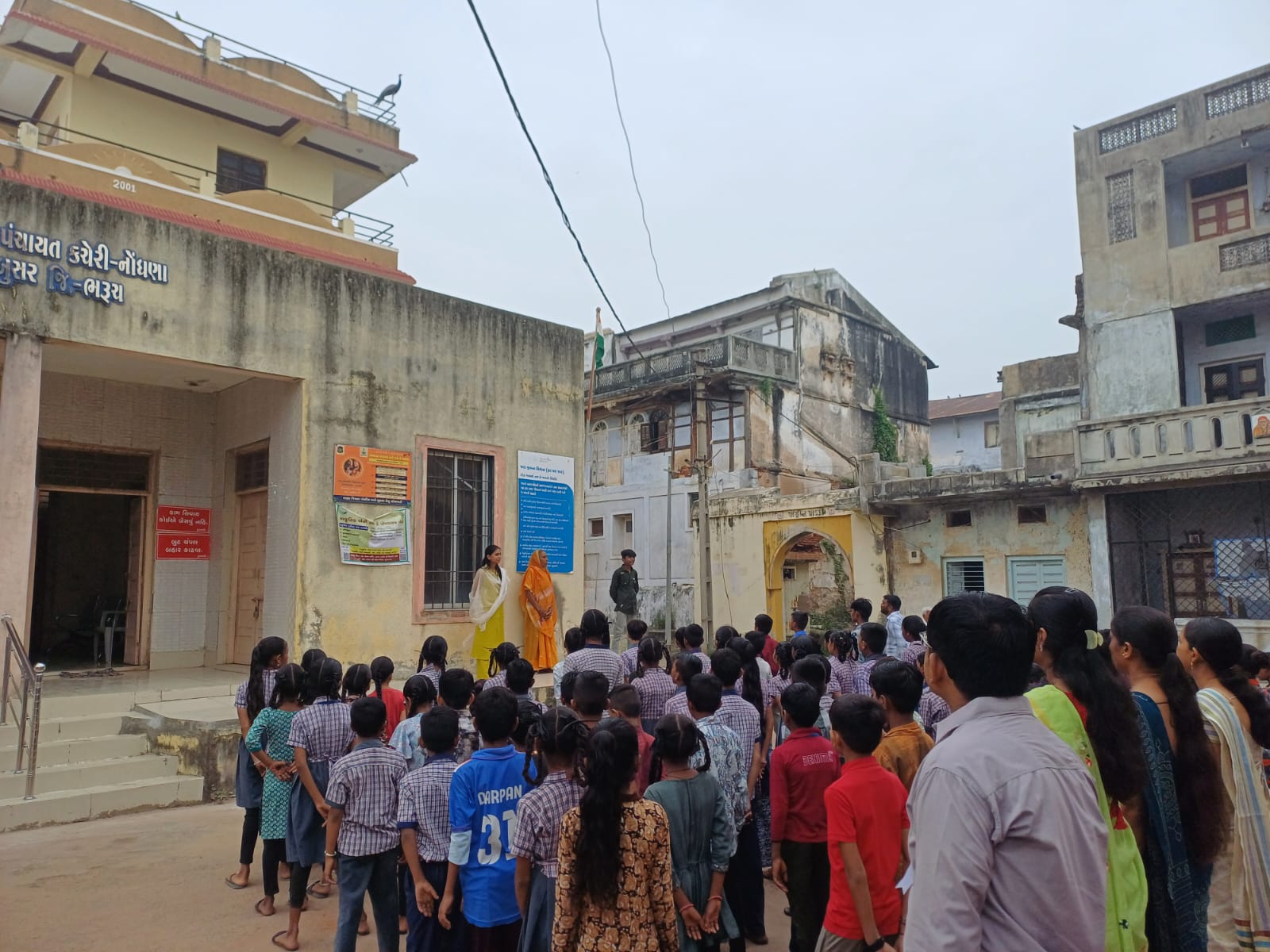 જંબુસર તાલુકાના નોંધણા ખાતે પ્રાથમિક મિશ્ર શાળા “ખાતે 79 માં સ્વતંત્રતા પર્વની, ભવ્ય માનવ વેદની વચ્ચે તિરંગો લહેરાવવામાં આવ્યો.