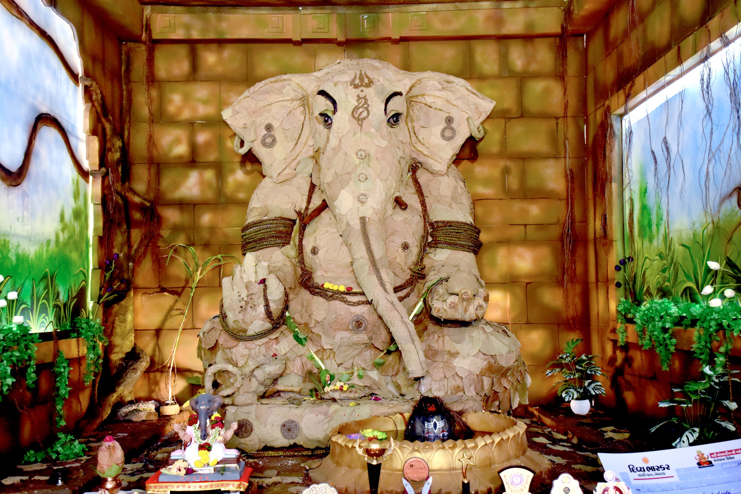 પર્યાવરણ રક્ષણના સંદેશ સાથે શહેરના આર્ટીસ્ટો જુના અખબાર, પાંદડા, નારિયેળનો કચરો જેવી ઇકો-ફ્રેન્ડલી સામગ્રીમાંથી ગણેશ મૂર્તિઓ બનાવે છે. જેમાં ખાસ કરીને કારેલીબાગની વલ્લભ નગર સોસાયટીના શ્રી ગણેશ મંડળે કેસુડાના પાંદડાથી બનેલી 9.5 ફૂટ ઊંચી મૂર્તિ સ્થાપિત કરી છે. છેલ્લા નવ વર્ષથી તેઓ આ પ્રકરની ઇકોફ્રેન્ડલી પરંપરાનું પાલન કરી રહ્યા છે અને મૂર્તિનું વિસર્જન કર્યા વગર તેને ખાતરમાં ફેરવી પર્યાવરણને બચાવવાનો અનોખો સંદેશ આપે છે.