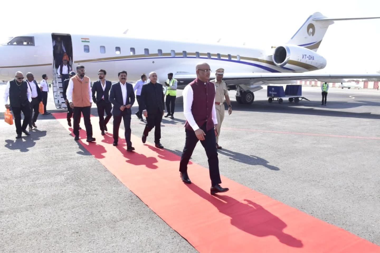 જામનગર તા.૨૧ ફેબ્રુઆરી, ગુયાના સહકારી ગણરાજ્યના ઉપરાષ્ટ્રપતિ ડૉ. ભરત જગદેવનું જામનગર એરપોર્ટ પર આગમન થતા મહાનુભાવો દ્વારા તેમનું ઉષ્માસભર સ્વાગત કરવામાં આવ્યું હતું.