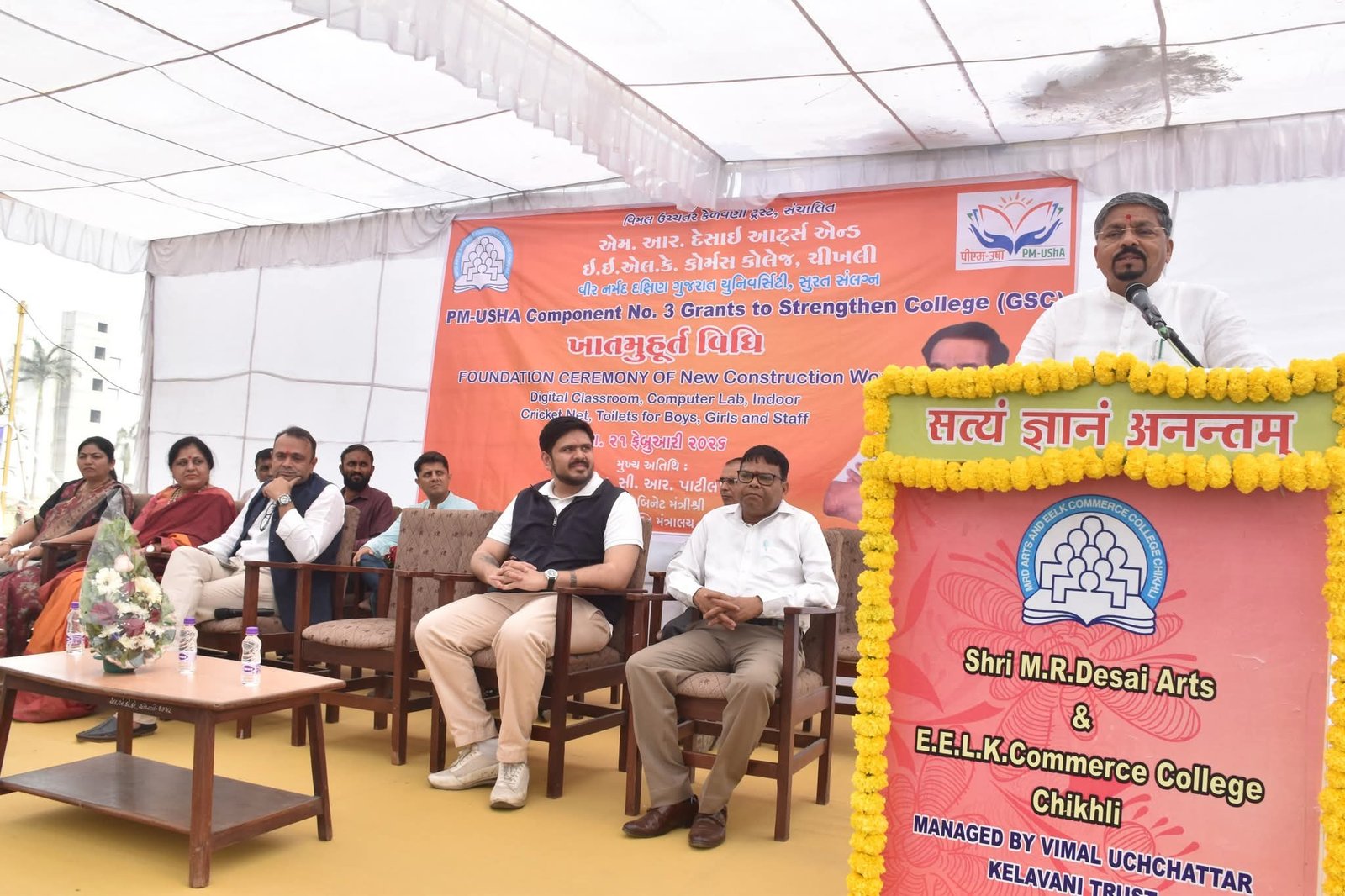 નવસારી જિલ્લાના ચીખલી ખાતે આવેલ એમ.આર.ડી. આર્ટસ તથા ઈ.ઈ.એલ.કે. કોમર્સ કોલેજના કેમ્પસમાં પ્રધાનમંત્રી ઉચ્ચ શિક્ષા અભિયાન અંતર્ગત રૂ. ૫ કરોડના ખર્ચે નિર્માણ પામનાર નવા શૈક્ષણિક સંકુલનું ખાતમુહૂર્ત આદિજાતિ વિકાસ, ખાદી, કુટીર અને ગ્રામોદ્યોગ મંત્રી નરેશભાઈ પટેલના વરદહસ્તે વિધિવત રીતે કરવામાં આવ્યું હતું. નવા મકાનમાં ડિજિટલ ક્લાસરૂમ, અદ્યતન કોમ્પ્યુટર લેબ તેમજ ઇન્ડોર ક્રિકેટ નેટ જેવી આધુનિક સુવિધાઓ ઊભી કરવામાં આવશે, જે વિદ્યાર્થીઓના સર્વાંગી વિકાસ માટે મહત્વપૂર્ણ સાબિત થશે.