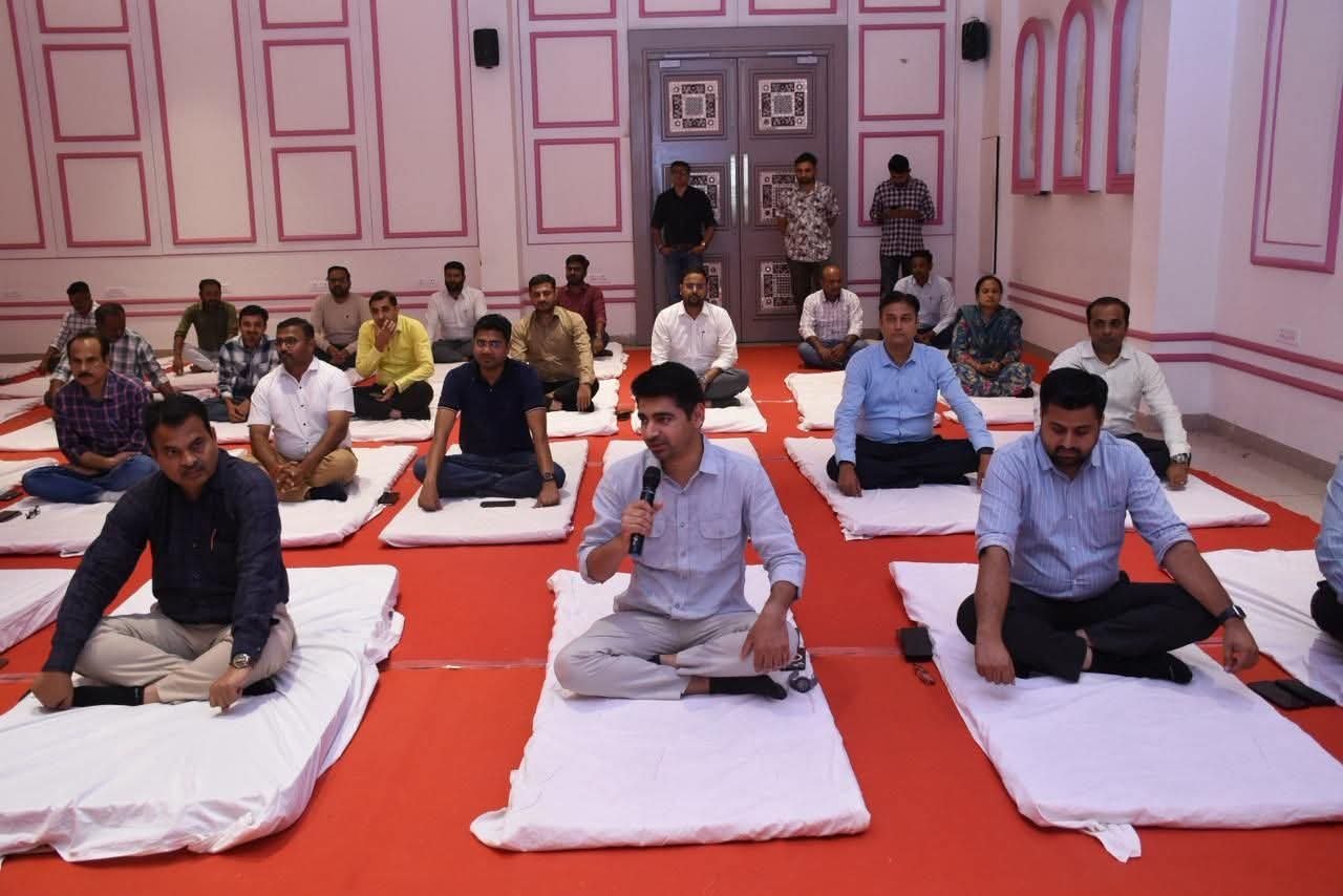 સરકારી કામકાજ અને જવાબદારીઓ વચ્ચે અધિકારીઓ તણાવમુક્ત રહી શકે અને તેમની કાર્યક્ષમતામાં વધારો થાય તે આશયથી આ અનોખા સાઉન્ડ મેડિટેશન સેશનનું આયોજન કરવામાં આવ્યું હતું. સુશ્રી અનિલા ગડા દ્વારા વિશેષ ‘સાઉન્ડ મેડિટેશન સેશન’ માં અધિકારીઓએ ઉત્સાહભેર ભાગ લીધો હતો. થેરાપ્યુટિક સાઉન્ડથી “ડીપ રેસ્ટ”, ધ્વનિ તરંગોની મદદથી શરીરના તણાવને દૂર કરવા પર વિશેષ ભાર મૂકવામાં આવ્યો હતો.