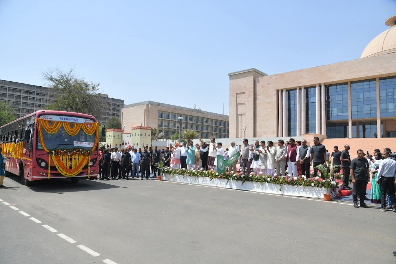 મુખ્યમંત્રી ભૂપેન્દ્રભાઈ પટેલે નાયબ મુખ્યમંત્રી હર્ષભાઈ સંઘવી સહિતના મહાનુભાવોની ઉપસ્થિતિમાં ગાંધીનગર ખાતેથી રાજ્યના તમામ 182 વિધાનસભા વિસ્તાર માટે કુલ 182 નવીન બસોનું લોકાર્પણ કર્યું; આ અવસરે નવીન બસોના ડ્રાઈવર્સને પ્રતીકરૂપે ચાવી અર્પણ કરાઈ.