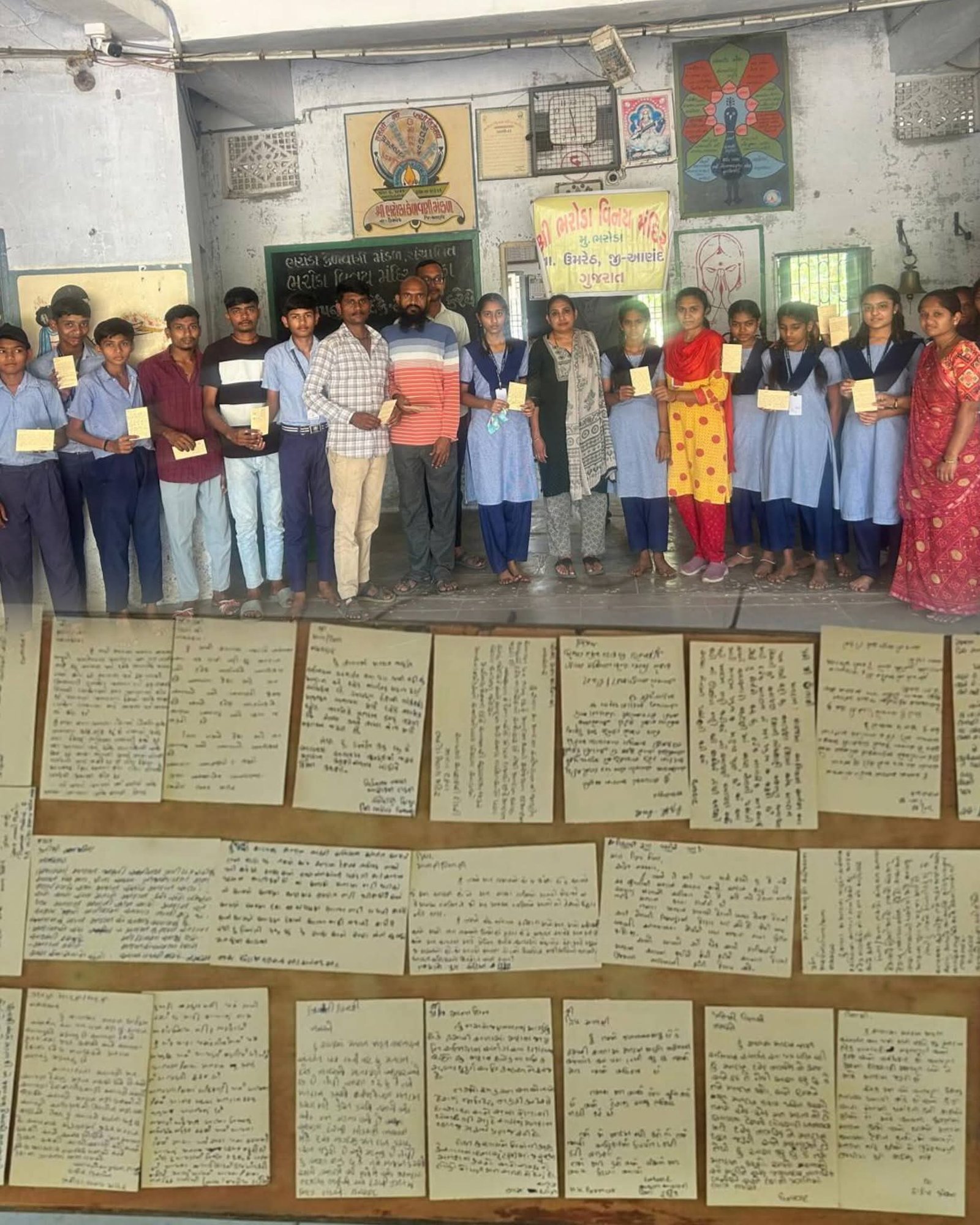 માર્ગદર્શન હેઠળ આજે ઉમરેઠ તાલુકાની પ્રાથમિક શાળાઓ, માધ્યમિક તથા ઉચ્ચતર માધ્યમિક શાળાઓના વિદ્યાર્થીઓએ તેમના વાલીઓને આગામી તારીખ 23મી એપ્રિલ 2026 ના રોજ યોજાનાર ઉમરેઠ વિધાનસભા પેટા ચૂંટણીના મતદાનના દિવસે મતદાન જરૂરથી કરવા માટે લાગણી ભર્યા પત્ર પાઠવ્યા છે. પત્રમાં વિદ્યાર્થીઓના લખાણ મુજબ મતદાનના દિવસે સમય કાઢીને ઘરના દરેક સભ્ય જે લાયક મતદારો છે અને જેમનું નામ મતદાર યાદીમાં છે તે પૈકી કોઈ પણ મતદાર મતદાનથી વંચિત ન રહીએ તેમ લખીને મતદારો પોતાની ફરજ નિભાવે અને લોકશાહીને જીવંત રાખવામાં પોતાની ફરજ અદા કરે તેવા પત્ર પણ લખ્યા છે.